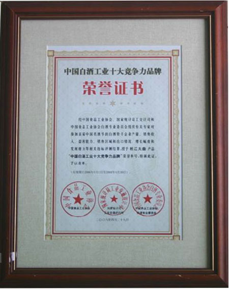 - 首屆中華名酒金樽獎