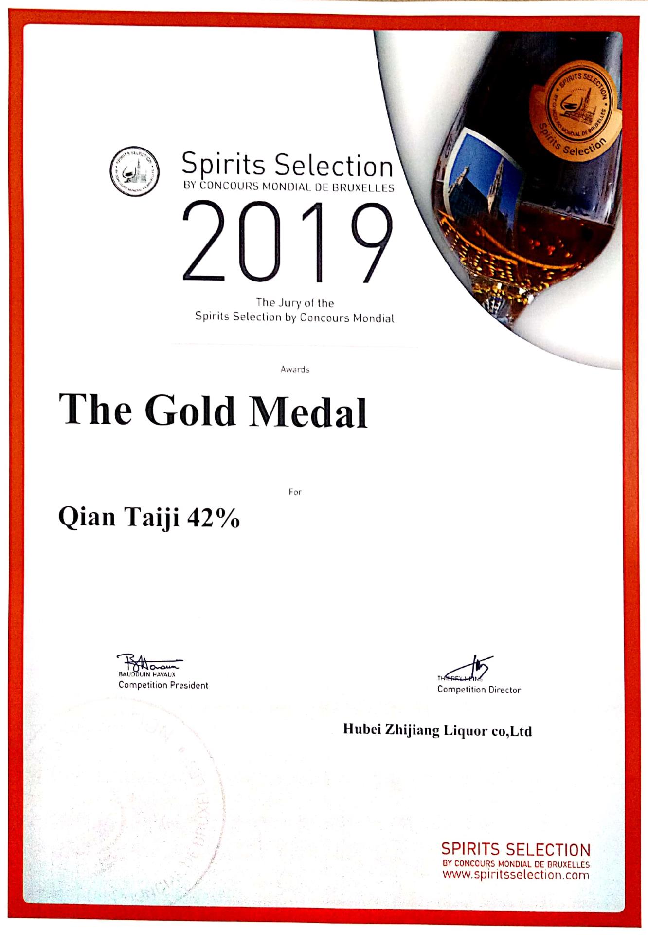 - 2019 年布魯塞爾烈酒大賽金獎