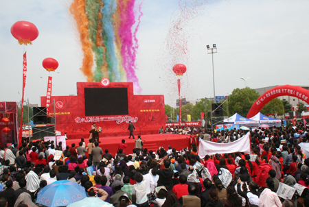 4月23日,枝江酒業(yè)集團玖源包裝有限公司總經(jīng)理劉鳳春在公司門(mén)口為獲得2009年度生產(chǎn)標兵的10名優(yōu)秀員工舉行歡送儀式,獎勵他們赴三峽旅游。 …