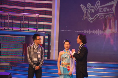 舞臺上的張翠華、李玉剛和李詠 3月21日晚,枝江酒業(yè)員工張翠華順利通過(guò)央視“非常6+1”節目的現場(chǎng)錄制,于22日下午回到枝江。在公司同…