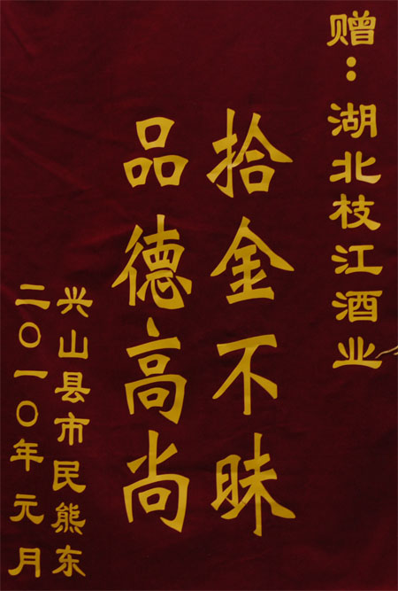 2月2日,來(lái)自興山的一個(gè)青年男子將印有“拾金不昧,品德高尚”字樣的錦旗,送到枝江酒業(yè)工會(huì )辦公室,以表達對拾金不昧的枝江酒業(yè)員工夏險峰的…