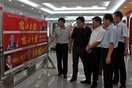 枝江酒業(yè)黨委書(shū)記張華(左一)向趙市長(cháng)(左三)介紹枝江酒業(yè)不同發(fā)展階段的形象代言人8月27日,黑龍江省綏化市委常委、常務(wù)副市長(cháng)趙萬(wàn)山一行…