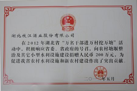5月22日,黨委書(shū)記張華代表枝江酒業(yè)出席了在武漢召開(kāi)的全省萬(wàn)名干部進(jìn)萬(wàn)村挖萬(wàn)塘總結表彰會(huì )。省委書(shū)記李鴻忠出席會(huì )議并講話(huà),省委副書(shū)記、省…