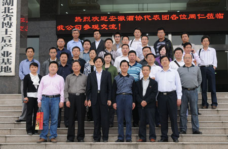 5月19日,安徽省酒業(yè)協(xié)會(huì )常務(wù)副會(huì )長(cháng)兼秘書(shū)長(cháng)李文漢、副秘書(shū)長(cháng)關(guān)京安率該省酒企高管一行29人,在湖北酒協(xié)副秘書(shū)長(cháng)劉彩成的陪同下,蒞臨枝江酒…