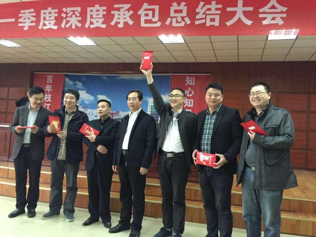 3月29日,枝江酒業(yè)銷(xiāo)售公司召開(kāi)2015一季度深度承包總結大會(huì ),對一季度銷(xiāo)售排名前十名的朱小紅、向陽(yáng)、肖文敏、馬玉柏、張飛、李雄、胡錦峰、周發(fā)武、李文華、龍俊華、王鬧等業(yè)務(wù)員給予了獎勵,同時(shí)對曹海林、劉碧、蘇發(fā)明、張勁松、陳海峰、李遠等區域經(jīng)理分別給予了1萬(wàn)元獎勵。枝江酒業(yè)總經(jīng)理陳洪衛在會(huì )上總結一季度銷(xiāo)售完成情況,代表公司高管對銷(xiāo)售人員的辛勤付出表示感謝。會(huì )上對省內的陽(yáng)新、松滋、漢川以及省外的鄧州等部分市場(chǎng)給予充分肯定。