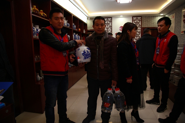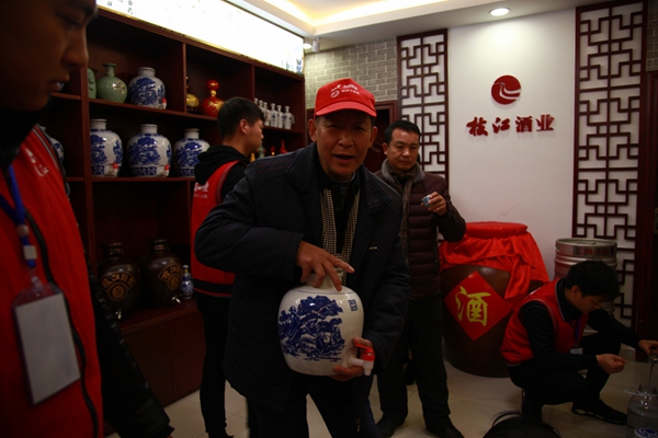 老人家說(shuō):你們的酒好,剛才品嘗了一點(diǎn)。贈送的酒壇更實(shí)用